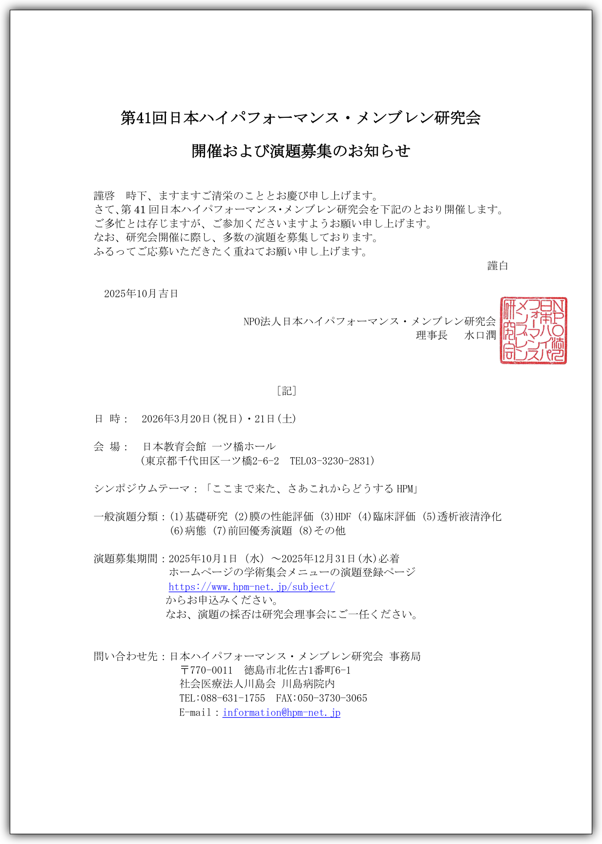 及び演題募集のお知らせ